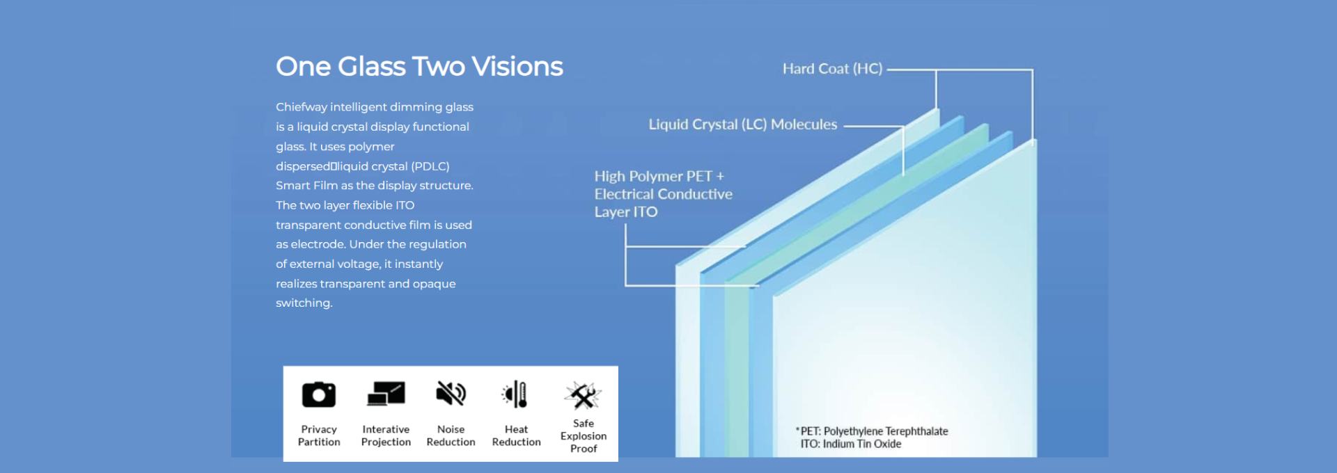 เราพัฒนาวัสดุหลักอย่างอิสระมานานกว่าสิบปีและได้รับสิทธิ์ในทรัพย์สินทางปัญญาข้ามชาติจนถึงขณะนี้ ชื่อมืออาชีพคือ PDLC Smart film (Polymer Dispersed Liquid Crystal) ผลึกเหลวโพลิเมอร์กระจาย โดยทั่วไปแล้วจะมีฟิล์มที่ควบคุมด้วยระบบอิเล็กทรอนิกส์ฟิล์มภาพที่ควบคุมด้วยระบบอิเล็กทรอนิกส์ฟิล์มคริสตัลเหลวที่ควบคุมด้วยระบบอิเล็กทรอนิกส์ตั้งแต่ Smart Window Film ไปจนถึงม่านอิเล็กทรอนิกส์เป็นต้น วัสดุก่อสร้างที่ประหยัดพลังงานสามารถแยกรังสีอัลตราไวโอเลตและรังสีอินฟราเรดได้อย่างมีประสิทธิภาพบรรลุผลของการส่งผ่านแสงและฉนวนกันความร้อนจากนั้นลดอุณหภูมิห้องและประหยัดการใช้พลังงานพื้นที่